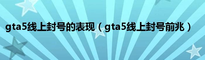 大家好,小晋来为大家解答以下问题,关于gta5线上封号的表现,gta5线上封号前兆很多人还不知道,今天让我们一起来看看吧!