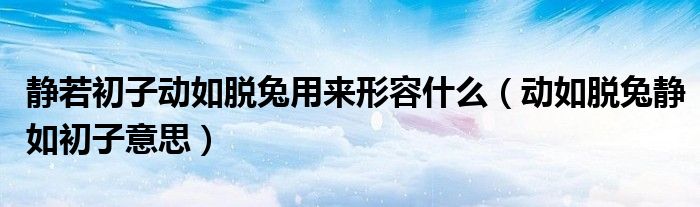 大家好,小晋来为大家解答以下问题,关于静若初子动如脱兔用来形容什么,动如脱兔静如初子意思很多人还不知道,今天让我们一起来看看吧!