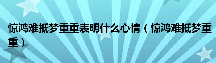 大家好,小晋来为大家解答以下问题,关于惊鸿难抵梦重重表明什么心情,惊鸿难抵梦重重很多人还不知道,今天让我们一起来看看吧!