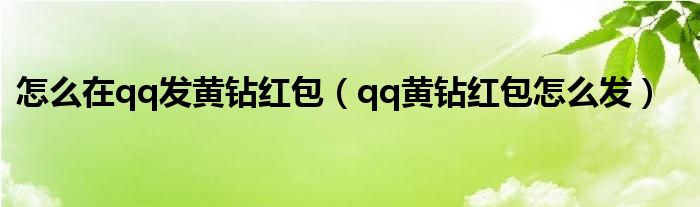 大家好,小晋来为大家解答以下问题,关于怎么在qq发黄钻红包,qq黄钻红包怎么发很多人还不知道,今天让我们一起来看看吧!