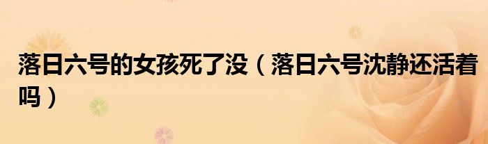 大家好,小晋来为大家解答以下问题,关于落日六号的女孩死了没,落日六号沈静还活着吗很多人还不知道,今天让我们一起来看看吧!