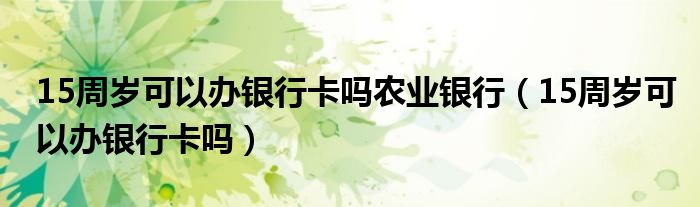 大家好,小晋来为大家解答以下问题,关于15周岁可以办银行卡吗农业银行,15周岁可以办银行卡吗很多人还不知道,今天让我们一起来看看吧!