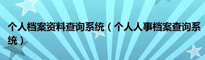 关于个人档案资料查询系统,个人人事档案查询系统这个很多人还不知道,今天菲菲来为大家解答以上的问题,现在让我们一起来看看吧!