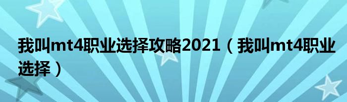 大家好,小晋来为大家解答以下问题,关于我叫mt4职业选择攻略2021,我叫mt4职业选择很多人还不知道,今天让我们一起来看看吧!