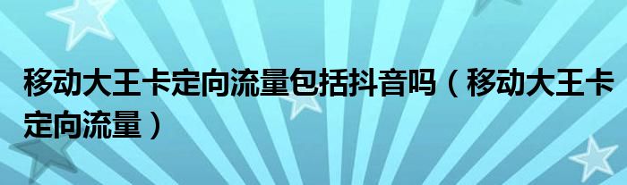 大家好,小晋来为大家解答以下问题,关于移动大王卡定向流量包括抖音吗,移动大王卡定向流量很多人还不知道,今天让我们一起来看看吧!
