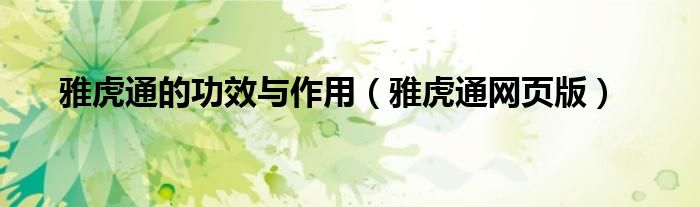 雅虎通的功效与作用(雅虎通网页版)