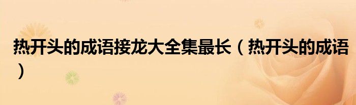 大家好,小晋来为大家解答以下问题,关于热开头的成语接龙大全集最长,热开头的成语很多人还不知道,今天让我们一起来看看吧!