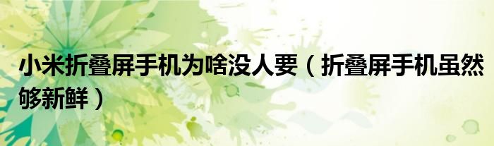 大家好,小常来为大家解答以上问题。小米折叠屏手机为啥没人要,折叠屏手机虽然够新鲜很多人还不知道,现在让我们一起来看看吧!