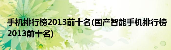 大家好,小常来为大家解答以上问题。手机排行榜2013前十名(国产智能手机排行榜2013前十名)很多人还不知道,现在让我们一起来看看吧!