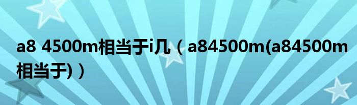 大家好,小常来为大家解答以上问题。a8 4500m相当于i几,a84500m(a84500m相当于)很多人还不知道,现在让我们一起来看看吧!