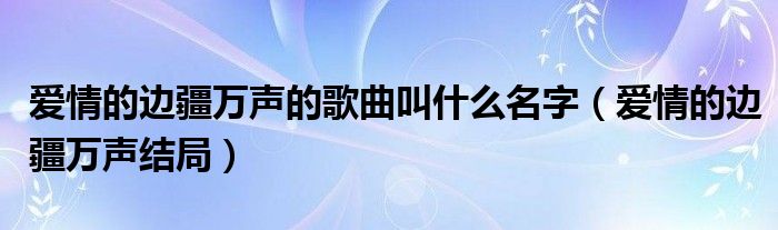 大家好,小晋来为大家解答以下问题,关于爱情的边疆万声的歌曲叫什么名字,爱情的边疆万声结局很多人还不知道,今天让我们一起来看看吧!