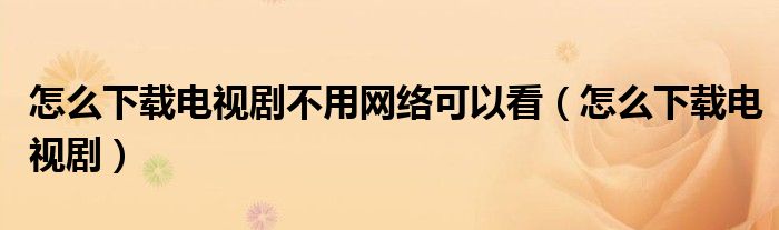 大家好,跳跳为你解答以上问题。怎么下载电视剧不用网络可以看,怎么下载电视剧这个问题很多人还不知道,现在让我们一起来看看吧!