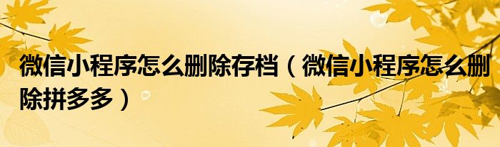 大家好,跳跳为你解答以上问题。微信小程序怎么删除存档,微信小程序怎么删除拼多多这个问题很多人还不知道,现在让我们一起来看看吧!