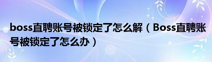 大家好,跳跳为你解答以上问题。boss直聘账号被锁定了怎么解,Boss直聘账号被锁定了怎么办这个问题很多人还不知道,现在让我们一起来看看吧!