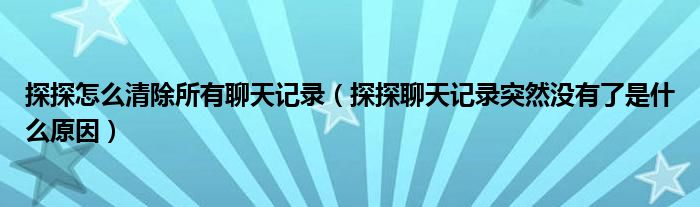 探探怎么清除所有聊天记录(探探聊天记录突然没有了是什么原因)