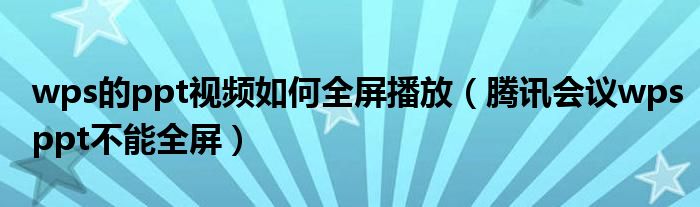 wps的ppt视频如何全屏播放(腾讯会议wpsppt不能全屏)