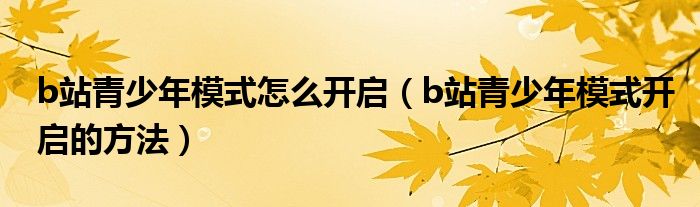 大家好,跳跳为你解答以上问题。b站青少年模式怎么开启,b站青少年模式开启的方法这个问题很多人还不知道,现在让我们一起来看看吧!