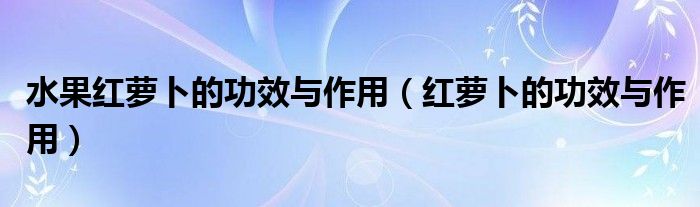 大家好,linda来为大家解答以上的问题。水果红萝卜的功效与作用,红萝卜的功效与作用很多人还不知道,现在让我们一起来看看吧!