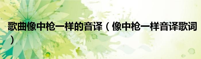 关于歌曲像中枪一样的音译,像中枪一样音译歌词这个很多人还不知道,今天菲菲来为大家解答以上的问题,现在让我们一起来看看吧!