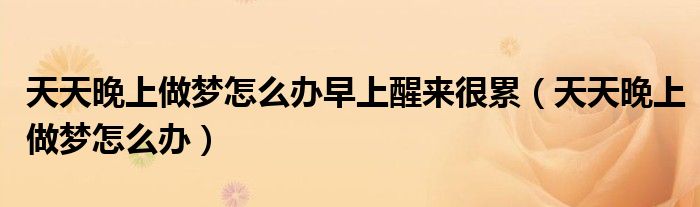 大家好,linda来为大家解答以上的问题。天天晚上做梦怎么办早上醒来很累,天天晚上做梦怎么办很多人还不知道,现在让我们一起来看看吧!