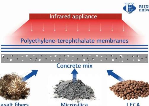 经常将Keramzit和玄武岩纤维添加到混凝土中以改善其质量。Keramzit使混凝土更轻,并增加其导热性,而玄武岩纤维使材料更不易碎。两种添加剂都有助于混凝土即使在低温下也能更均匀地凝固。但是,在冬天还不够,因为冻融循环会导致混凝土变形和分裂。为了避免这种情况,需要额外的添加剂和新的固化技术。为了解决这个问题,RUDN大学的一个工程师团队开发了一种新型混凝土,并建议在凝固过程中将混合物加热。