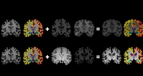 麻省理工学院的研究人员开发了一种系统,该系统可以从未标记的数据中收集更多的标记训练数据,这可以帮助机器学习模型更好地检测与神经系统疾病相关的大脑扫描中的结构模式。该系统了解未标记扫描的结构和外观变化,并使用该信息将一个标记扫描塑造和塑造为成千上万个新的,不同的标记扫描。图片由研究人员提供