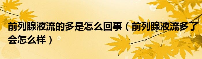 大家好,linda来为大家解答以上的问题。前列腺液流的多是怎么回事,前列腺液流多了会怎么样很多人还不知道,现在让我们一起来看看吧!