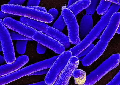 大肠杆菌(用于生产生物燃料的细菌)的彩色扫描电子显微照片。图片来源:NIAID