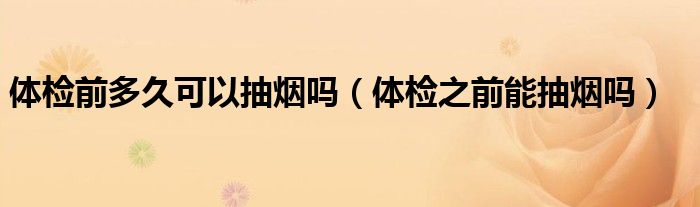 大家好,linda来为大家解答以上的问题。体检前多久可以抽烟吗,体检之前能抽烟吗很多人还不知道,现在让我们一起来看看吧!