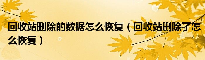 以上是关于回收站删除了怎么恢复,删除文件恢复教程的介绍。希望对你有帮助!