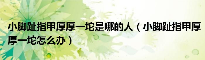 大家好,linda来为大家解答以上的问题。小脚趾指甲厚厚一坨是哪的人,小脚趾指甲厚厚一坨怎么办很多人还不知道,现在让我们一起来看看吧!