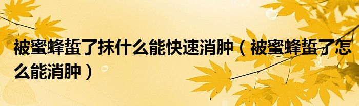 大家好,linda来为大家解答以上的问题。被蜜蜂蜇了抹什么能快速消肿,被蜜蜂蜇了怎么能消肿很多人还不知道,现在让我们一起来看看吧!