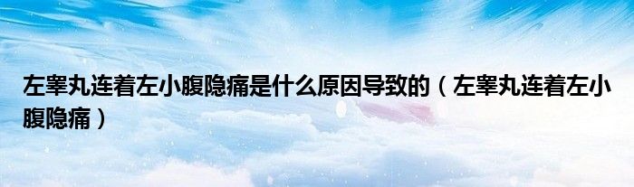 大家好,linda来为大家解答以上的问题。左睾丸连着左小腹隐痛是什么原因导致的,左睾丸连着左小腹隐痛很多人还不知道,现在让我们一起来看看吧!
