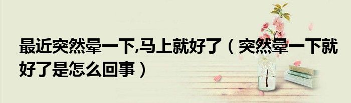 最近突然晕一下,马上就好了(突然晕一下就好了是怎么回事)