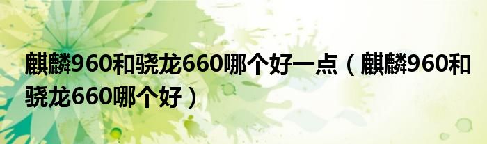 大家好,小晋来为大家解答以下问题,关于麒麟960和骁龙660哪个好一点,麒麟960和骁龙660哪个好很多人还不知道,今天让我们一起来看看吧!