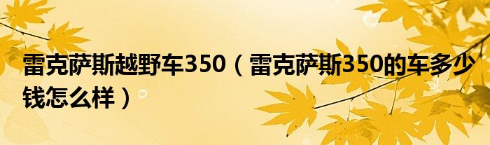 1,雷克萨斯350的车多少钱怎么样 :雷克萨斯 不同型号的350价格不同 ES的价格是在47万左右!