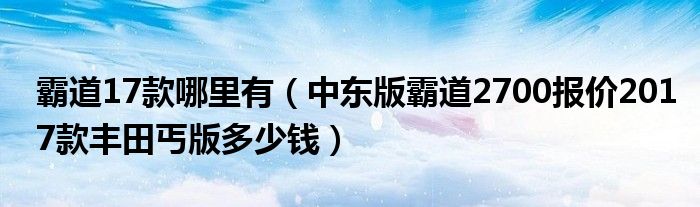 大家好,小常来为大家解答以下问题,对于霸道17款哪里有,中东版霸道2700报价2017款丰田丐版多少钱很多人还不知道,今天让我们一起来看看吧!