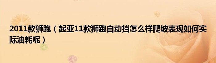 大家好,小常来为大家解答以下问题,对于2011款狮跑,起亚11款狮跑自动挡怎么样爬坡表现如何实际油耗呢很多人还不知道,今天让我们一起来看看吧!
