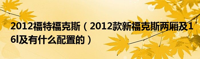 1,2012款新福克斯两厢 16l 有什么配置的 :1、福克斯分为经典福克斯(focus)和新福克斯(new focus)两种,虽然都叫福克斯,但是相似的地方很少,发动机、变速箱、内饰都不一样,可以说是两种车了。新福克斯比经典福克斯贵2万左右。新福克斯目前最新款是2012款的,经典福克斯目前最新款...