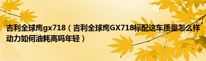 1,吉利全球鹰GX718标配这车质量怎么样动力如何油耗高吗年轻:全球鹰GX7是SUV车型,外观、内饰、空间都是一样的。GX718是这车型中是1.8排量的。GX7有三种排量1.8L、2.0L、2.4L自动挡。