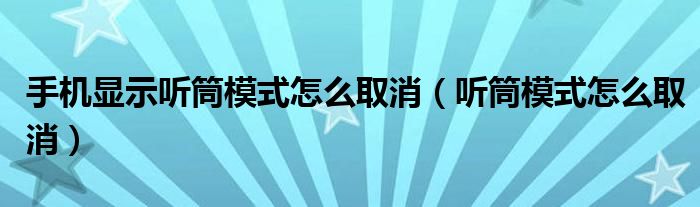 手机显示听筒模式怎么取消(听筒模式怎么取消)