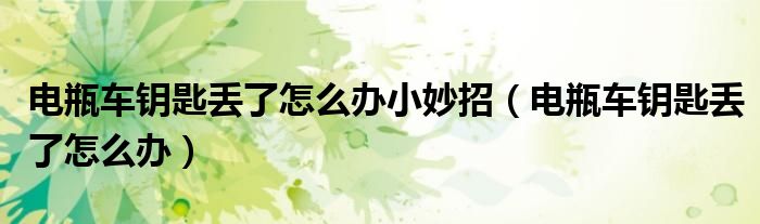 大家好,小美来为大家解答以上问题。电瓶车钥匙丢了怎么办小妙招,电瓶车钥匙丢了怎么办很多人还不知道,现在让我们一起来看看吧!