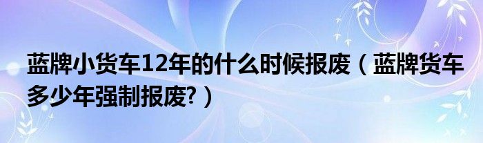 大家好,小美来为大家解答以上问题。蓝牌小货车12年的什么时候报废,蓝牌货车多少年强制报废?很多人还不知道,现在让我们一起来看看吧!