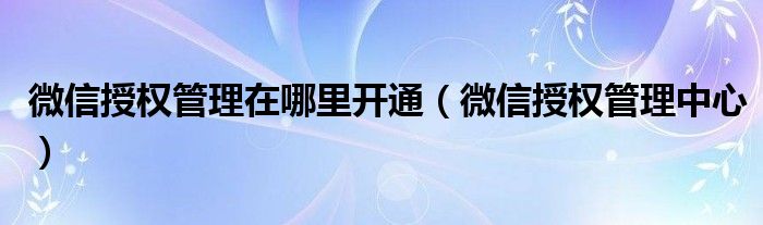 关于微信授权管理在哪里开通,微信授权管理中心这个很多人还不知道,今天菲菲来为大家解答以上的问题,现在让我们一起来看看吧!