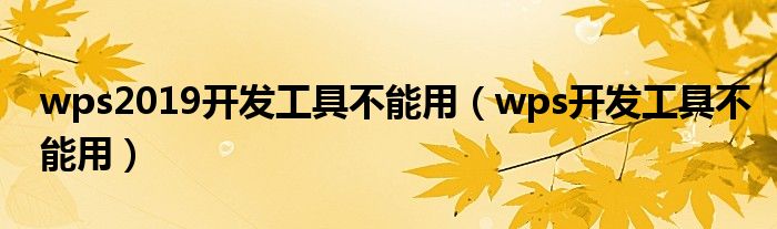 wps2019开发工具不能用(wps开发工具不能用)
