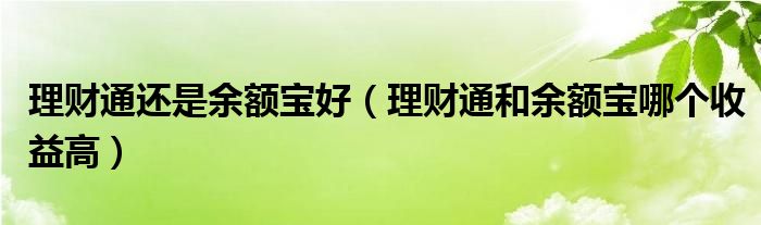 理财通还是余额宝好(理财通和余额宝哪个收益高)
