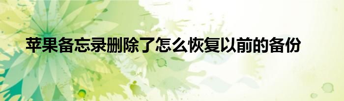 关于苹果备忘录删除了怎么恢复以前的备份这个很多人还不知道,今天菲菲来为大家解答以上的问题,现在让我们一起来看看吧!
