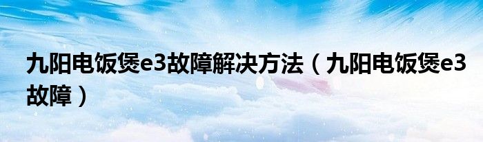 关于九阳电饭煲e3故障解决方法,九阳电饭煲e3故障这个很多人还不知道,今天菲菲来为大家解答以上的问题,现在让我们一起来看看吧!