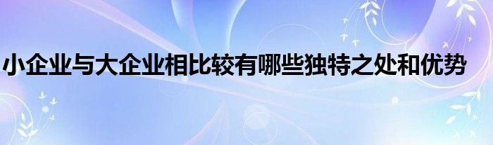 关于小企业与大企业相比较有哪些独特之处和优势这个很多人还不知道,今天菲菲来为大家解答以上的问题,现在让我们一起来看看吧!