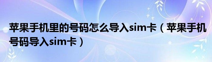 关于苹果手机里的号码怎么导入sim卡,苹果手机号码导入sim卡这个很多人还不知道,今天菲菲来为大家解答以上的问题,现在让我们一起来看看吧!
